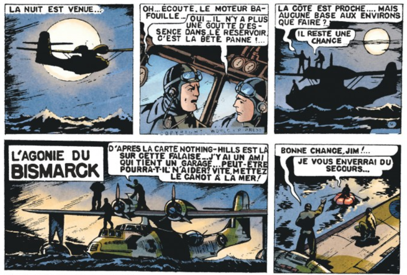 Ceci dit, l'on peut voir, dès les premières pages disponibles sur le site de l'éditeur, quelques belles bourdes. Dans L'agonie du Bismarck par exemple (cf. l'extrait ouvrant cette news), un joli et audacieux "peut-être pourra-t-il n'aider". On se demande si c'est une simple coquille à la place de "m'aider" ou, plus probablement (vu qu'ils sont plusieurs), s'il s'agit d'une élision aux forceps d'un pauvre "nous" qui n'avait rien demandé.