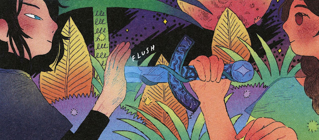 Les éditions çà et là ont réalisé un très joli travail éditorial : le livre moyen format de 180 pages est imprimé sur papier épais, au dos piqué cousu avec une couverture rigide. Les couleurs explosent dans les cases. Mais, L’épée est vendue maladroitement comme un conte féministe sur l’argument d’une majorité de personnages féminins... alors que le propos touche à l’universel.